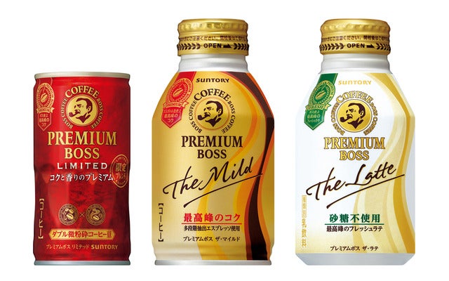 サントリー食品インターナショナルは、「プレミアムボス リミテッド」を9月6日、ボトル缶コーヒー「同 ザ・マイルド」「同 ザ・ラテ 〈砂糖不使用〉」を9月27日から発売する。