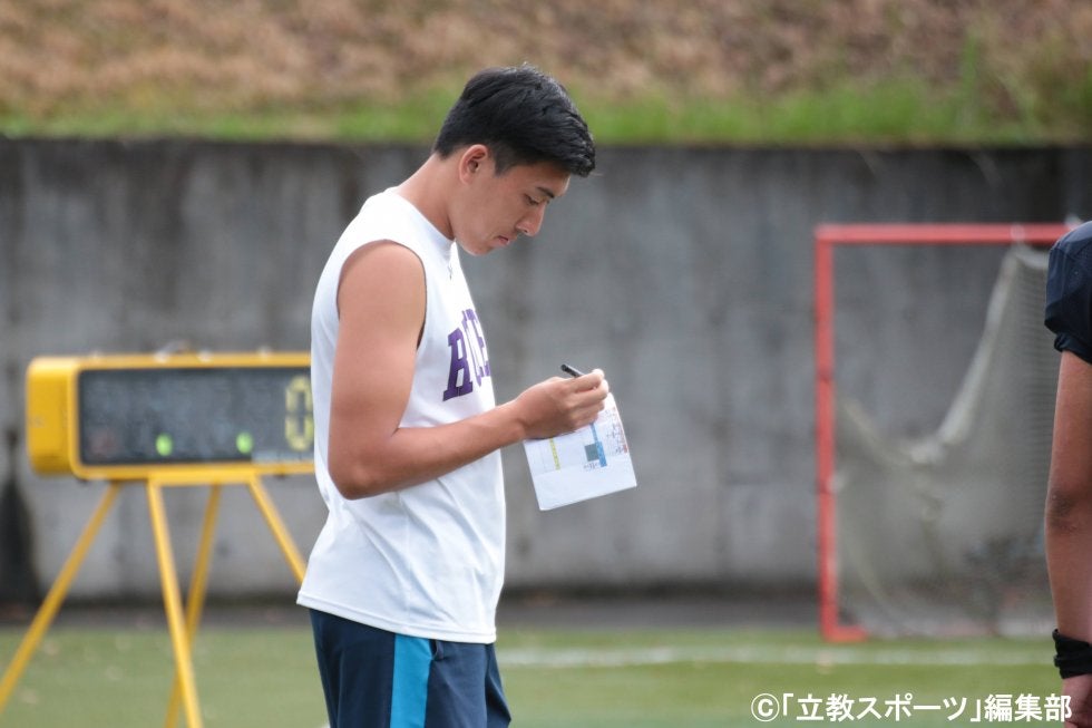 練習の合間に一息つく三隅(社3)