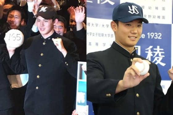 それぞれドラ1指名を受けた大船渡・佐々木朗希(左)、星稜・奥川恭伸【写真:編集部、荒川祐史】