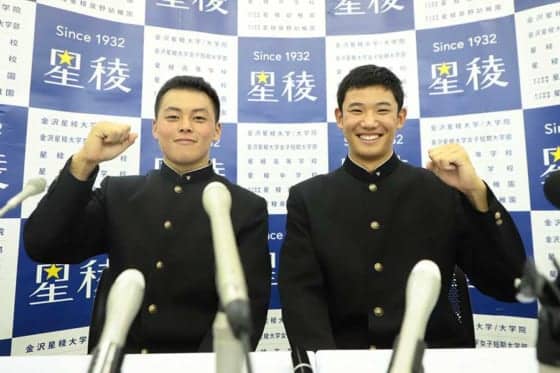 星稜・山瀬慎之助(左)は巨人から5位指名、奥川恭伸はヤクルトから1位指名となった【写真:編集部】