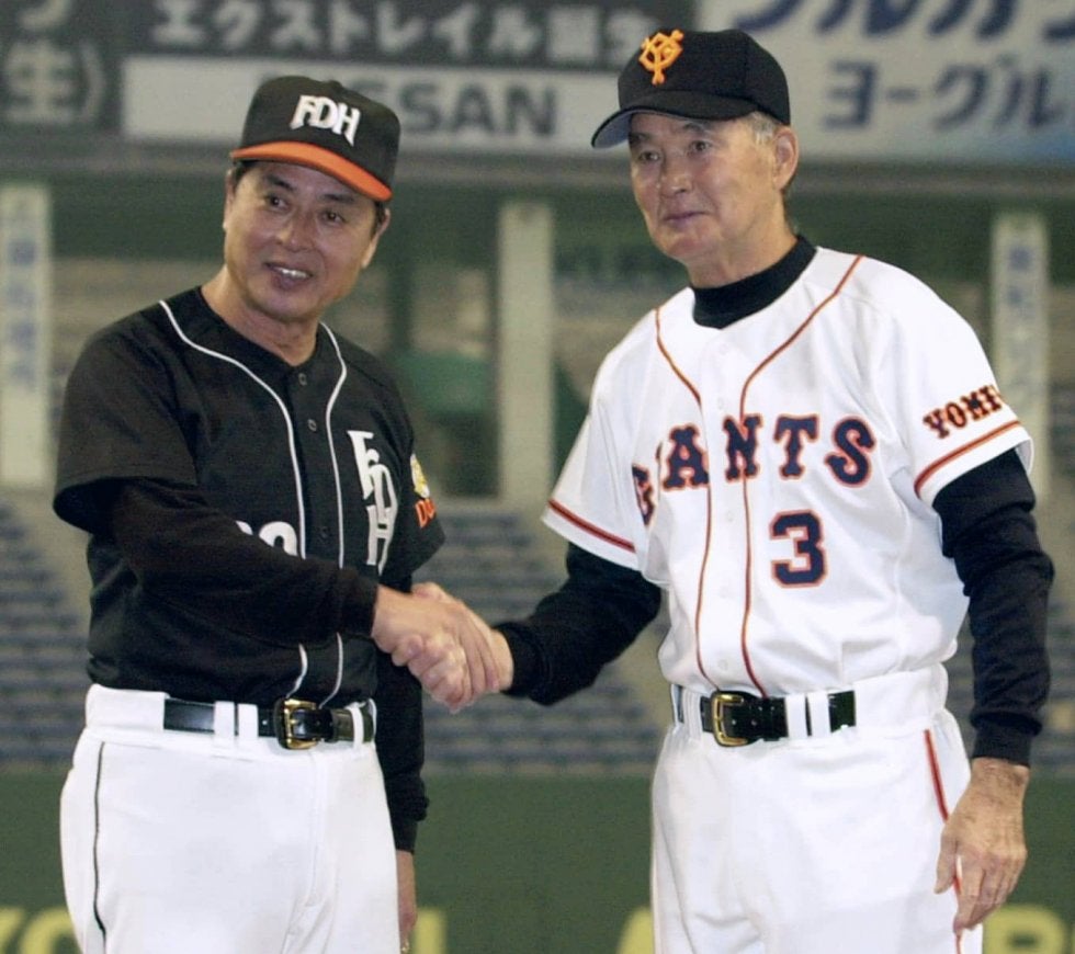 【写真提供:共同通信社】2000年10月20日、「ON対決」の日本シリーズ開幕を前に、健闘を誓い握手するダイエーの王貞治監督(左)と巨人の長嶋茂雄監督=東京ドーム