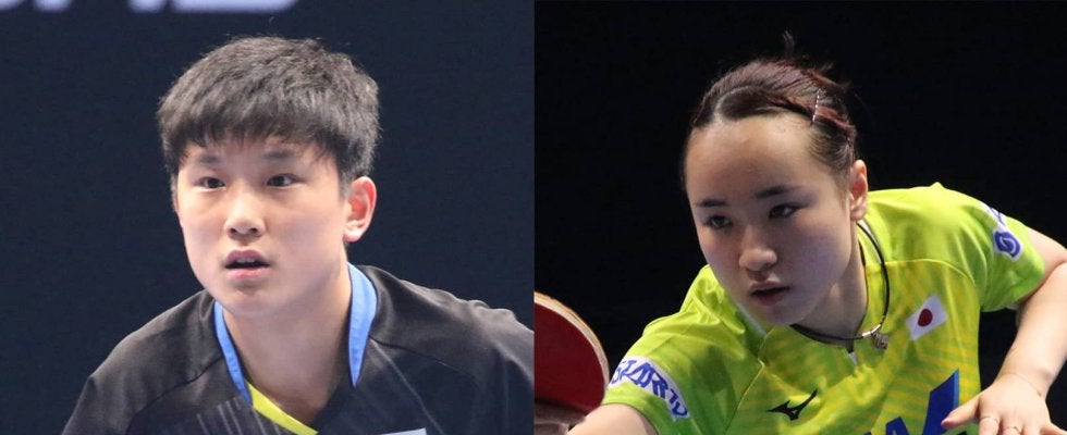 写真:張本智和(木下グループ・写真左)、伊藤美誠(スターツ・写真右)/撮影:ラリーズ編集部