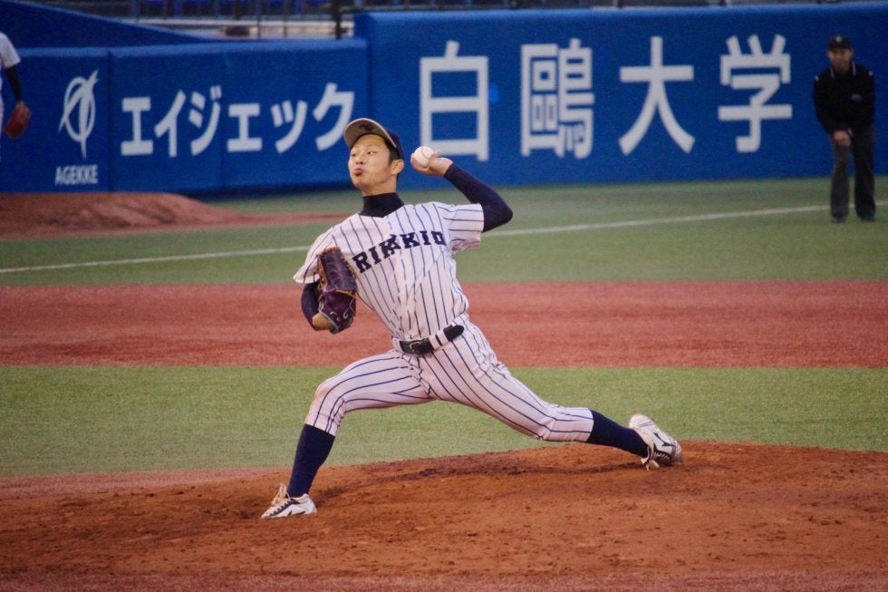 立大の先発は、4年生左腕の田中誠也(4年・大阪桐蔭)。プロ志望届を出さずに社会人・大阪ガスでプレーすることが決まっている不動のエースは、2回に自らのボークで1点、5回に小藤翼(4年・日大三)にソロアーチを被弾したが、それ以外のイニングでは走者を背負いながらも持ち前の粘り強さを発揮して得点を許さず。