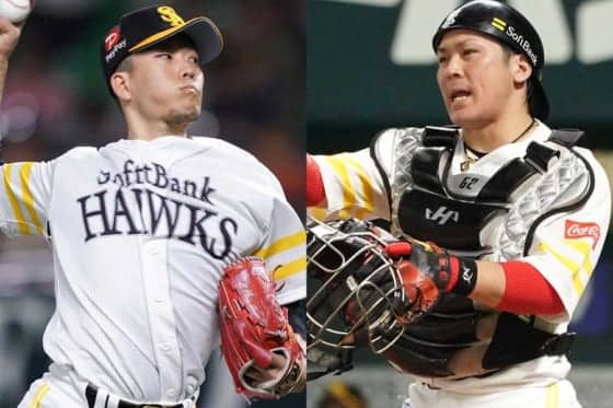 ソフトバンク・千賀滉大(左)、甲斐拓也【写真:荒川祐史】