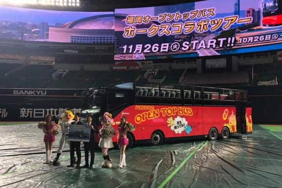 ヤフオクDにバスで乗り入れる!? 鷹と西鉄がオープントップバスコラボツアーを運行