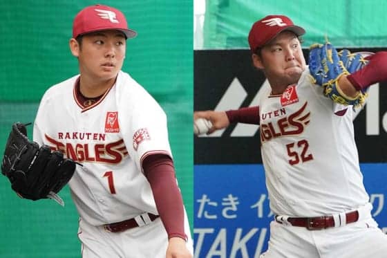 楽天・松井裕樹(左)、森原康平【写真:荒川祐史】