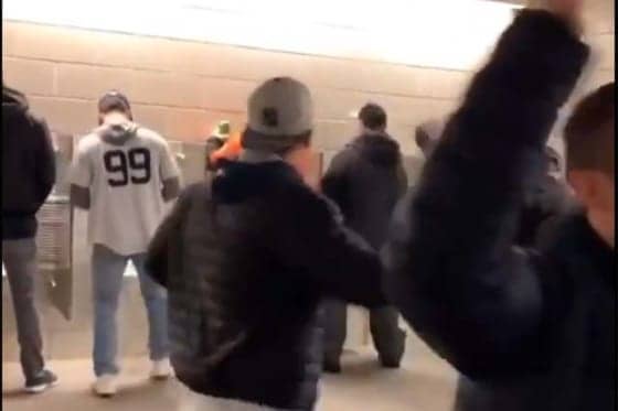 ヤンキースとアストロズが激突したア・リーグ優勝決定シリーズで、ヤンキースファンによる非常識な行動が相次いで報告される中、新たな問題行為がツイッターで公開された。米メディア「バーストゥールスポーツ」は、ヤンキースタジアムのトイレで用を足している男性に対して、ヤンキースファンとみられる男が缶ビールを振り回してビールを浴びせる瞬間を動画で投稿。用を足していた男性はアストロズのレプリカユニホームを着用している。