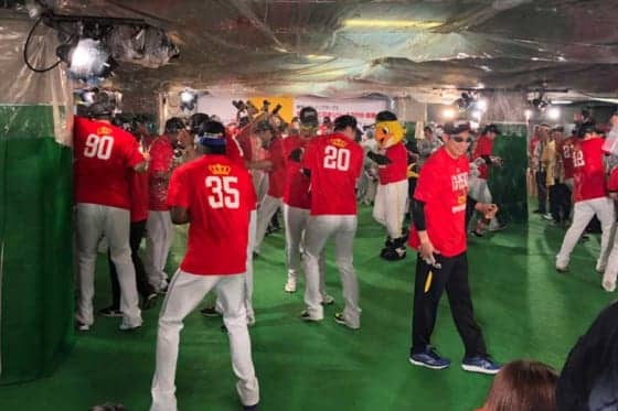 球団史上初の3連覇を果たしたソフトバンクは23日夜にビールかけを行った【写真:編集部】