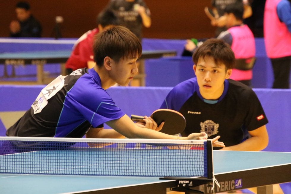 25日、大学生No.1を決める全日本大学総合卓球選手権大会(以下、全日学)が開幕した。男子ダブルス1回戦で関西大学から、各務博志/増田隆介ペアと、坂根翔大/福本卓朗ペアの2ペアが1回戦に登場し、それぞれゲームカウント3-1と3-0で勝利した。