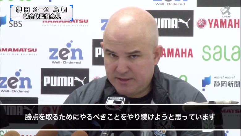一方で最下位の磐田は、17位の松本と勝ち点7差が開いている。フェルナンド・フベロ監督は「チームは少しずつ成長しているし、残りは5試合ある。勝ち点を取るために、やるべきことをやり続けようと思っている」と今後を見据えた。
