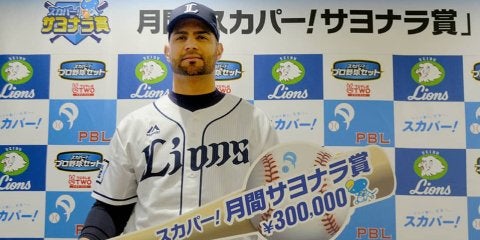 来日初のサヨナラ本塁打の西武・メヒアに「スカパー!サヨナラ賞」