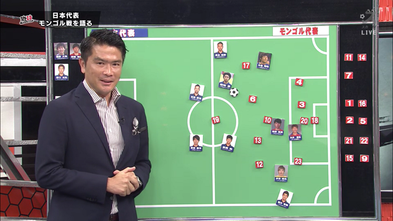 また、MCの岩政大樹が「ボールウォッチャーになりやすいモンゴルの守備陣に対して、伊東は非常に有効だった」と語れば、中田も「伊東がサイドで相手守備陣を広げることで、空いたスペースに南野が入ってくるといった連携が見えた」とコメント。一同が伊東の起用に手応えを感じた。