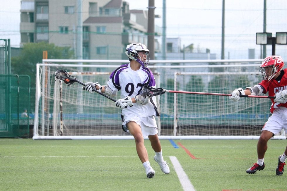 続く第2Q。雲の隙間から太陽が顔を覗かせ、グラウンドに光が差す。まるでこれからのSAINTSの躍動を暗示するかのようだった。試合開始1分、#74加賀屋(現3)のショットが決まる。この日のチーム初得点に観客は大いに盛り上がり、応援にも熱が入った。さらに開始6分30秒、#63熊田(済2)から#74加賀屋への素早いパスが通り、ボールを受け取った#97櫻井(済2)のショットがゴールネットを揺らす。タイムアウト明け、相手に得点を許すも、攻めの姿勢を崩さない。この試合唯一1年生でメンバー入りを果たした#12安藤(文1)も積極的にゴールを狙う。試合が動いたのは開始13分30秒。#26渡辺(法2)が距離のある所から、うまく抜いてショット。再び逆転に成功し、SAINTSの熱い戦いに観客もこの日一番の盛り上がりを見せた。第2Qを3-2で終え、後半に繋いだ。
