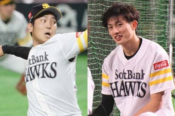 ソフトバンク・石川柊太(左)と周東佑京【写真:荒川祐史、藤浦一都】