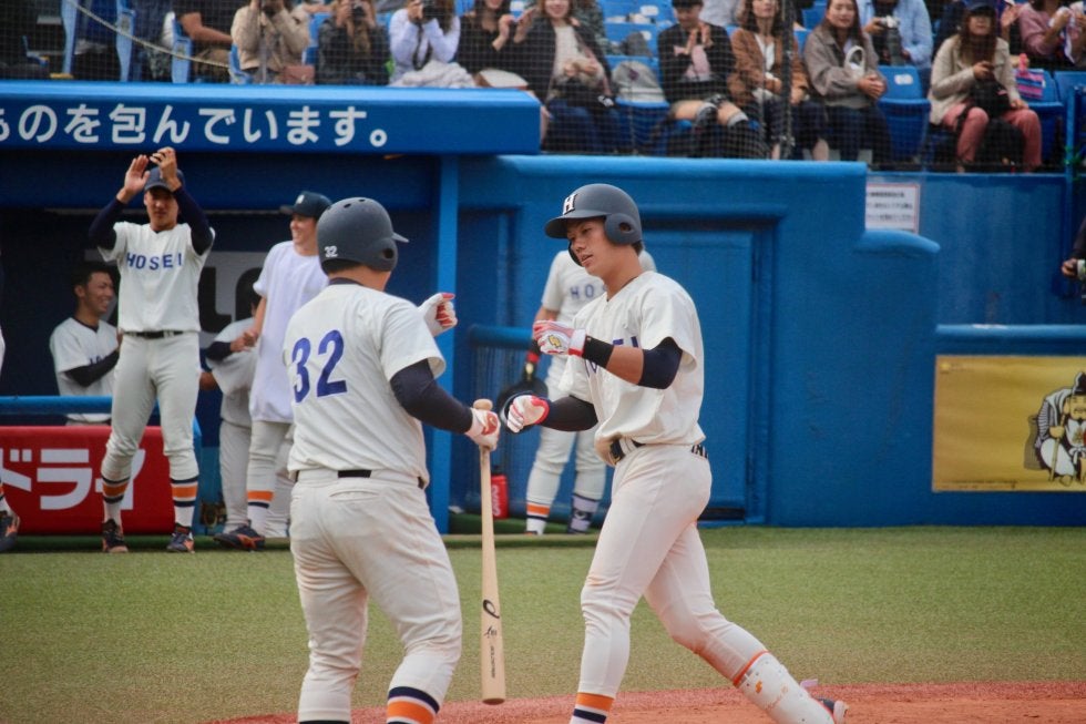 終盤に勝利への執念を見せた法大が6対4で東大に逆転勝ち。今カード2連勝で勝ち点を4に伸ばし、逆転優勝の可能性を残した。