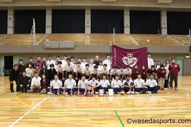 秋季関東大学リーグ戦(秋季リーグ戦)最終日。先週の明大戦ですでに優勝を決めている早大はきょう東海大と対戦した。各セットの立ち上がりに苦戦するものの順調にセットを奪取。松井泰二監督(平3人卒・千葉=八千代)不在の中セットカウント3-0(25-20、25-18、25-17)でストレート勝利。見事春季リーグ戦と同様に全勝優勝を決めた。