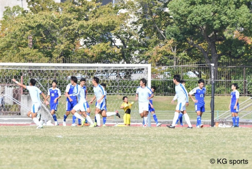 <写真・相手にセットプレーを決められ肩を落とす選手たち> 10月30日、ヤンマーフィールド長居にて第97回関西学生サッカ…