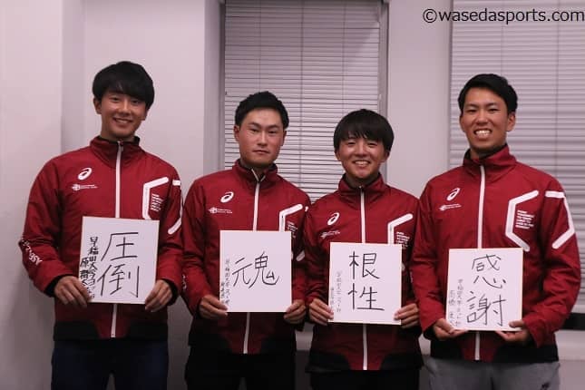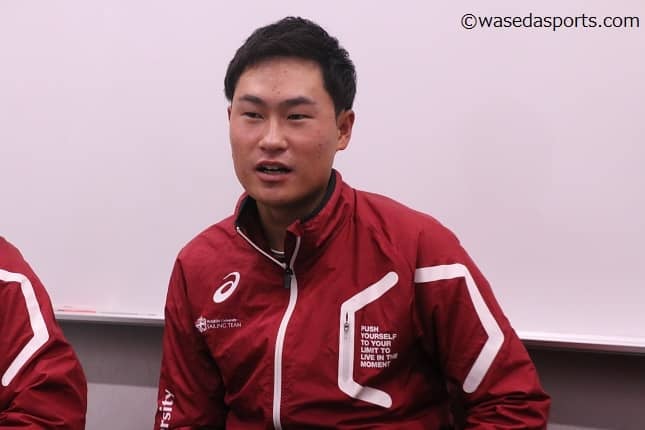 海老原競技面は2人と一緒なんですが、あと強いて言えば下級生、1年生などものびのび生活できたり練習できている環境があって、他の大学だと下級生が働いて上級生は何もしないということも多いんですが早稲田は4年生もしっかり働くし下級生ものびのびできているのでそこがいい所だと思います。
