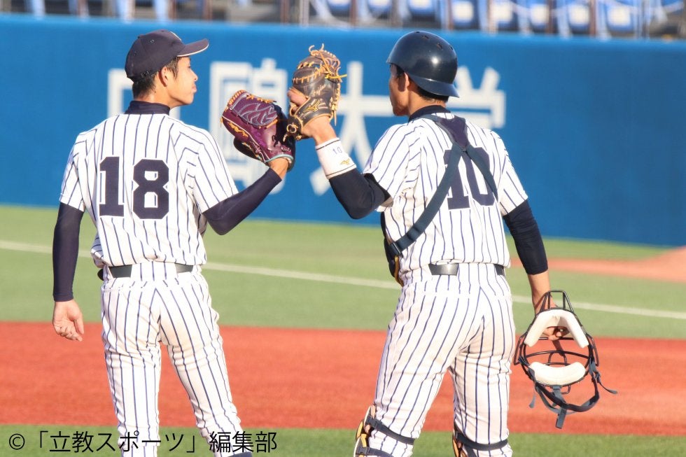 最終回には、2年次からRIKKIOのマウンドを守り続けた背番号18の姿。背中でチームを引っ張り続けた田中誠が登場する。内野陣全員とグータッチをしながらマウンドに向かった。ストライクやアウトになるたびに沸き上がる歓声や拍手に、「今まで投げ続けて良かったと思える瞬間でした」と喜びをかみしめた。27個目のアウトを藤野の盗塁阻止で奪うと、真っ先に女房役と抱き合った。「藤野が今までの中で一番いいバッテリー」と3年間組み続けた相棒に感謝した。そして、「最後の最後まで立大のエースで良かった」と充実感をにじませながら、笑顔で大学野球を振り返った。