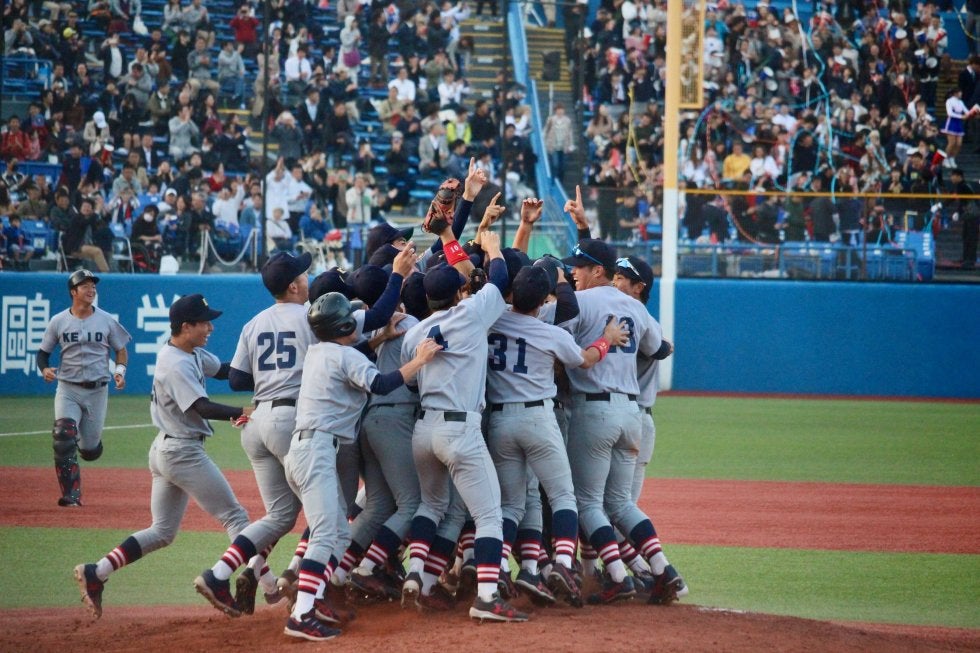 慶大が7対1で早大に快勝。開幕から負けなしの9連勝で3季ぶり37度目のリーグ優勝を決めた。