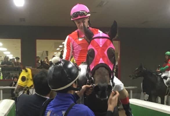 手綱をとったルメールは「ずっといい感じでしたね。いいスタートを切って、道中は2番手でリラックスしていました。直線を向いてからは加速して、ゴール前では物見をするくらい余裕がありましたよ。能力がありそうです」とパートナーをたたえた。