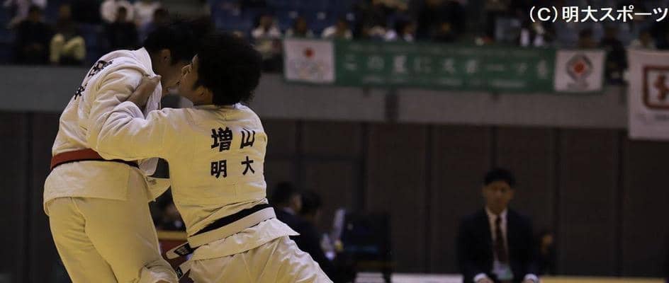 悔しさがにじむ一戦となった。両膝のケガの影響もあり、十分に練習ができないまま今大会に挑んだ増山。初戦からGS(ゴールデンスコア)にもつれ込むも、相手の反則を誘い順調に勝ち進んだ。ヤマ場となった準決勝の相手は村尾三四郎(東海大)。過去に二度対戦し、勝利している相手だが「細かいところを積みきれなかった」(増山)。連戦による疲労と、村尾に両襟を持たれ、効果的な技をかけられない。GSに入り2分3秒。得意の背負い投げをかけようとしたところが仇となり大外刈で一本負け。今年度、講道館杯優勝を目指してきた増山にとって無念な結果に終わった。