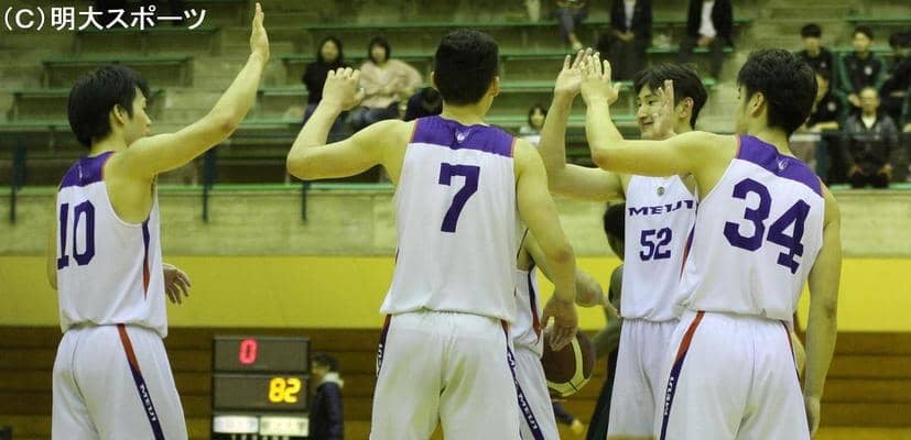 待望の瞬間だった。20戦目の相手は1戦目で勝利した白鴎大。開始直後から激しい点の取り合いとなり、4点リードで最終クオーター(Q)に突入した。一時は1点差まで詰め寄られたが、エース・SF須藤昂矢(営4=桐光学園)の連続得点で突き放し勝負あり。14点差で勝利し最下位を脱出した。