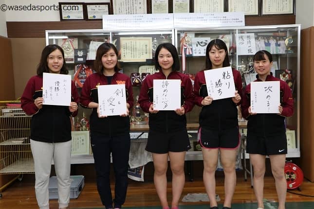 全日本学生選手権(インカレ)前対談第3回に登場するのは早大女子フルーレを引っ張る3年生。遠藤里菜(スポ3=群馬・高崎商大付)、仙葉楓佳(社3=秋田・聖霊女短大付)、千葉朱夏(スポ3=岩手・一関第一)、登尾早奈(スポ3=愛媛・三島)、溝口礼菜(スポ3=千葉・柏陵)の5人で行なわれた対談は賑やかなものとなった。