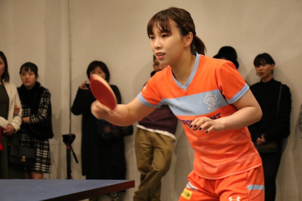 写真:ラリーをする松平志穂(日本ペイントマレッツ)/提供:Tリーグ
