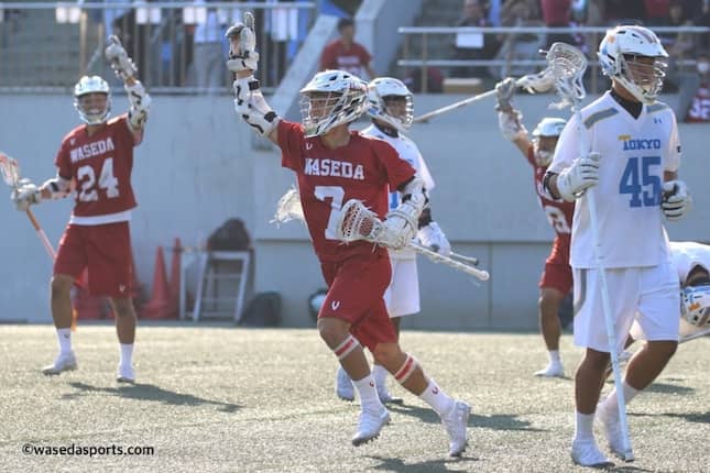 秋晴れの青空の下、満員の駒沢公園第二球技場は決戦の瞬間を迎えようとしていた。大学ラクロス最激戦区とうたわれる関東地区において、その王者を決める一戦である。決勝に駒を進めたのは早稲田大学と東京大学。偶然にも昨年の対戦カードと同じになった。昨年勝利したのは早大。早大が2年連続の関東王者となるのか、はたまた東大が昨年のリベンジを果たすのか。因縁の一戦は、AT岡田康平(教4=東京・早実)のゴールで口火を切った。その後も積極的に攻め込みリードを広げ、反撃も許さなかった早大は、9−3で東大を圧倒。2年連続の関東王者に輝いた。