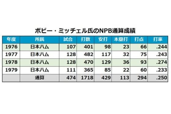ボビー・ミッチェル氏のNPB通算成績