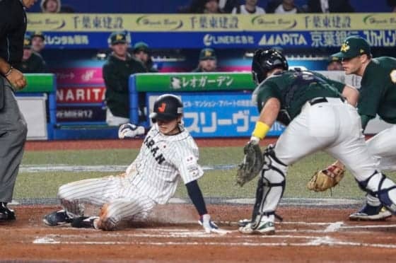野球日本代表「侍ジャパン」は11日、ZOZOマリンスタジアムで「第2回 WBSCプレミア12」(テレビ朝日系列で放送)スーパーラウンド初戦オーストラリア戦を戦い、3-2で逆転勝ちした。先発の山口俊投手が2点を先行されたが、4回に4番鈴木が3戦連発となるソロ本塁打。7回には代走の周東の2つの盗塁と源田のセーフティーバントで追いつき、8回に押し出し四球でついにリードを奪った。
