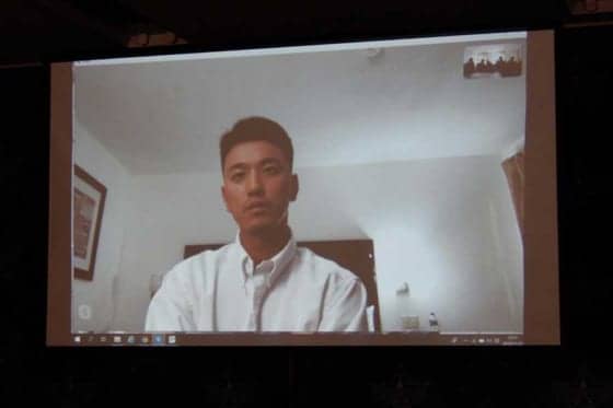 メキシコと横浜市内の球団事務所を「Skype」でつないで会見 DeNAの関根大気外野手が契約更改し、12日に会見を行った…