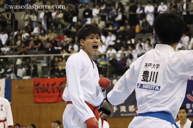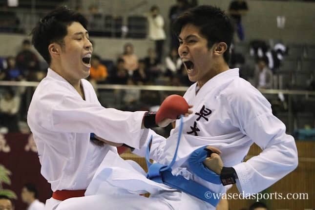 1回戦の神戸大戦では、先鋒の吉田翔太(スポ2=埼玉・栄北)が相手に先取される厳しい状況になった。しかし「残りの1分で2点取ろう」(吉田)と冷静に攻撃の機会を狙った。残り12秒で上段突きを決め同点とし、残り2秒で再び上段突きを決めて逆転勝利。次鋒として登場した芝本航矢(スポ3=東京・世田谷学園)は、試合開始わずか12秒で先制する。その後も立て続けに点を奪い、3対0で勝利。続く中堅・長沼俊樹(スポ1=東京・保善)は6対1と相手を寄せ付けない圧巻の組手で勝ち星を挙げる。副将の野澤颯太(法1=長野・松商学園)、大将の笹野由宇主将(スポ4=東京・世田谷学園)も勝利を収め、全勝で2回戦進出を決めた。