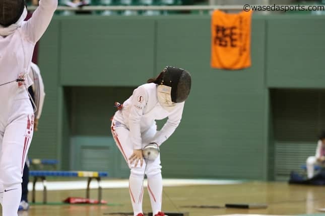 全日本学生選手権(インカレ)は2日目を迎えた。行われたのは男子サーブル個人と女子エペ個人。女子エペは駒場みなみ(スポ3=富山西)がベスト16進出も、一本勝負での敗北しベスト8入りならず。悔しさが残る敗退になった。男子サーブルは青木貴雅(スポ2=静岡・沼津西)のベスト16が最高の結果に。ただ全体的に見れば早々に敗北した選手が多く、納得のいく結果を残すことはできなかった。両種目とも団体戦で巻き返しを狙う。