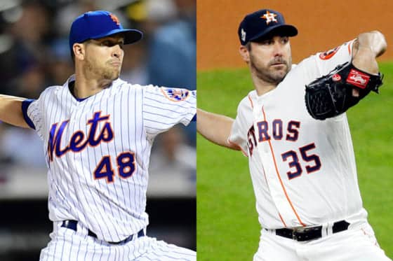 メッツのジェイコブ・デグロム(左)、アストロズのジャスティン・バーランダー【写真:Getty Images】