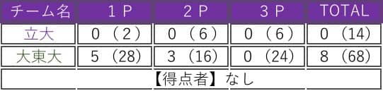 ◆2019年度関東大学アイスホッケーリーグ戦◆10月6日 対大東大 ダイドードリンコアイスアリーナカッコ内はシュート数前…