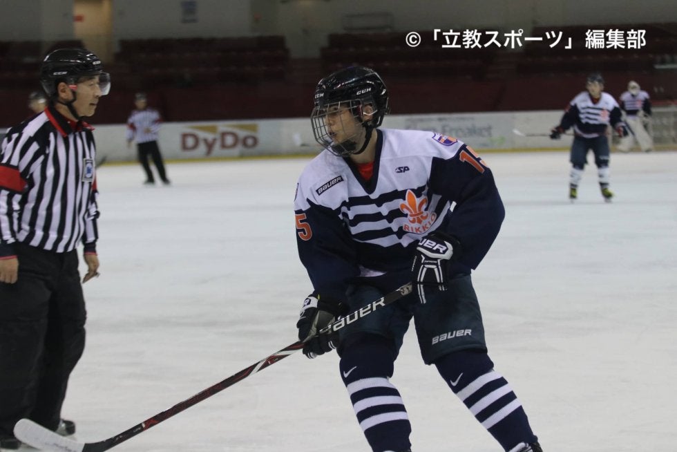 立教は試合序盤から防戦一方になる。1P開始4分で先制されるとたて続けに失点し、5点を失う。さらに、11分には矢部(済2)が負傷交代。幸先の悪い展開になった。