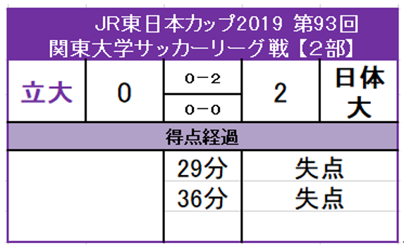 ◆JR東日本カップ2019 第93回関東大学サッカーリーグ戦 【2部】◆10月27日 対日体大 慶大下田グラウンド2部残…