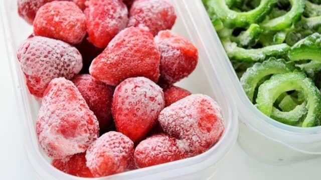 冷凍保存した場合、栄養価を衰えさせる酵素の分解作用を抑制できるのもポイントです。イギリスの大学の研究では、野菜やくだものを栄養価が低下する前に冷凍すると、生のまま保存するよりも栄養価やうま味成分の含有量が高いことが明らかになりました。