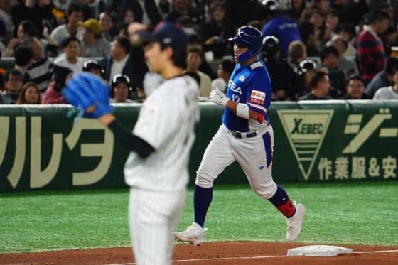 日本は2回に菊池の適時打で1点を先制。しかし、その直後、韓国は3回先頭のファン・ジェギュンが1ボール2ストライクから左中間スタンドに飛び込むソロ本塁打を放ち、1-1とした。