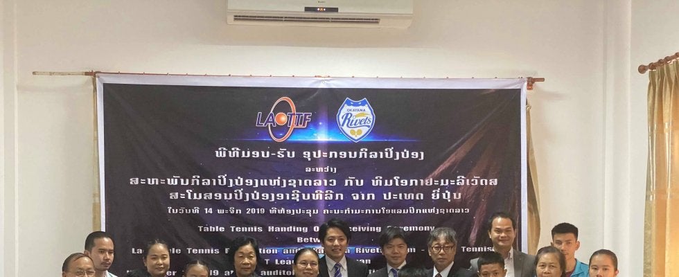 卓球Tリーグの岡山リベッツは11月14日にラオスのオリンピック委員会に訪問し、卓球用品を寄贈した。