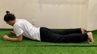 腹筋や体幹トレーニングでもよく取り入れられる「プランク」にチャレンジしてみましょう。
