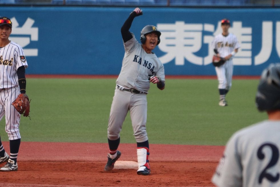 関西大(関西五連盟第一代表)が東海大(関東五連盟第二代表)を延長10回タイブレークの末に8対7で下し、47年ぶりの優勝に王手をかけた。