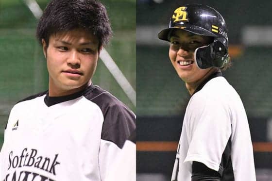 ソフトバンク・甲斐野央(左)、今宮健太【写真:藤浦一都】