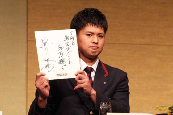 楽天新入団会見、ドラ2黒川は1年目でお立ち台3回を目標 「楽天ポイント30万円」 | 野球