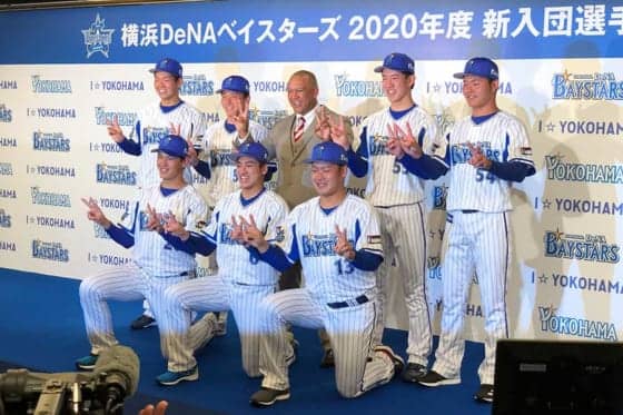 DeNAは22日、横浜市内で新入団発表記者会見を行い、支配下7選手の入団が正式に発表され、各選手の背番号も合わせて発表された。会見では各選手がプロの舞台への期待を胸に抱負を語った。