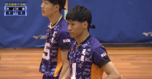 天理高校 vs 添上高校・解説:光山秀行(近畿大学バレーボール部監督)・実況:若田部克彦(関西テレビ)・会場名:桜井市芝…