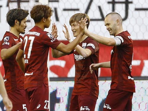 セレッソ大阪に競り勝ち、喜ぶアンドレス・イニエスタ、古橋亨梧らヴィッセル神戸イレブン