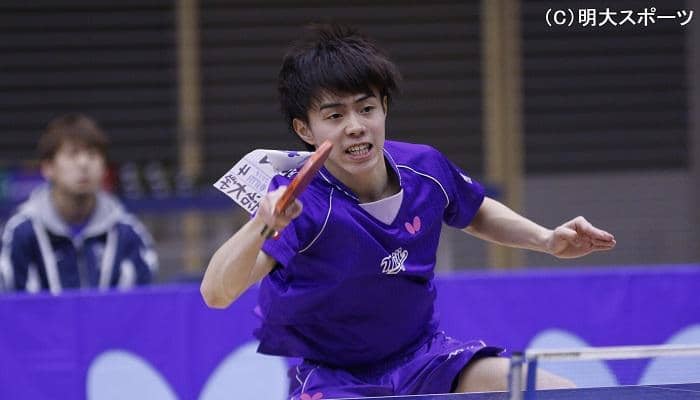 エースが実力をみせつけた。全日学では最善を尽くせなかった龍崎であるが、1、2回戦を順調に勝ち進む。しかし、迎えた準決勝、強豪・愛知工大の田中佑汰相手に1ゲームを取るも大事な局面でのネットなどの些細なミスが多発し敗北。「押せてる部分もあったが後手に回ってしまった」(龍崎)。3位決定戦は過去に惜敗している坂根翔大(関大)と対戦。右手から放つ重いドライブが何度もポイントへつなぎ、危なげない試合運びで勝利。5年越しのリベンジを果たし、表彰台に立った。